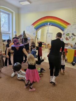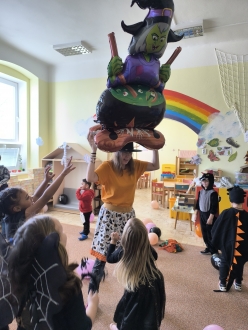 V mateřince se poslední říjnový den sešla různá strašidýlka. Zažili jsme společně tradiční Strašidýlkování. Tančili jsme, ochutnávali dobroty, přeskakovali a podlézali provaz a snažili se udržet nafouknutý balónek při tanci. Na konci nás čekala sladká odměna.