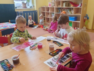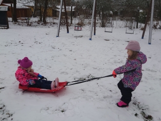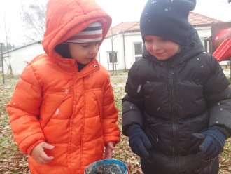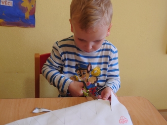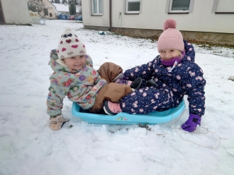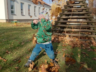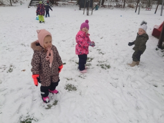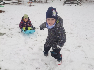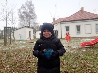 Poslední listopadový týden jsme si s dětmi povídali o tom, jak se příroda připravila na zimu, a jak se na zimu musíme připravit my sami. Při výtvarné výchově jsme si vyrobili z papíru rukavice a čepice. Nácvik samotného oblékaní jsme praktikovali každý den před pobytem venku. S prvním sněhem jsme si také užili bobování na školní zahradě a koulovačku.