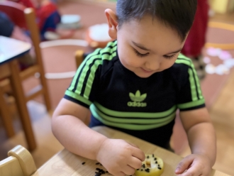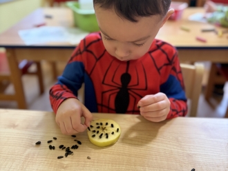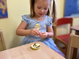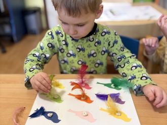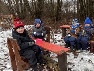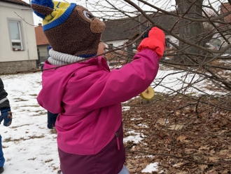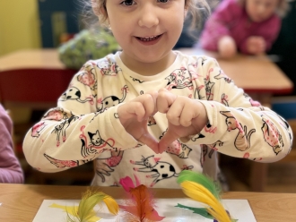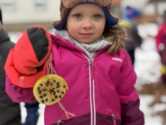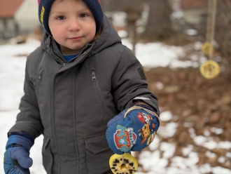 Kdo přilétá na krmítko? To nás zajímalo třetí lednový týden. Seznámili jsme se s několika druhy ptáků, které můžeme potkat na krmítku. Na krmítko na zahradě nám kromě ptáčků chodily i veverky. Z jablek a slunečnicových semínek jsme ptáčkům vyrobili závěsné krmení. Ve školce jsme z kartonu vyrobili ptačí budku a posadili jsme do ní papírové ptáčky. Barvy jsme si procvičili přiřazováním barevných pírek k ptáčkům. Zatančili jsme si na písničku Huboval vrabčák a připomněli jsme si ptačí tanec.
