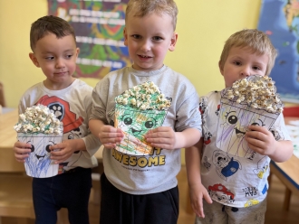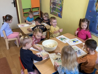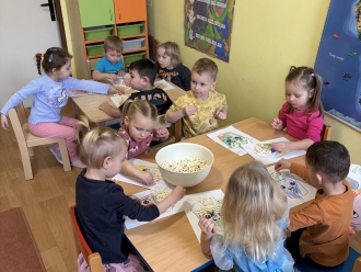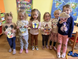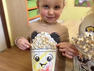 19. ledna jsme si připomněli mezinárodní den popcornu. Zhlédli jsme pohádku Pat a Mat popcorn. Popcorn jsme nezapomněli ochutnat a ze zbylého jsme si vyrobili obrázek.