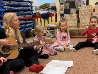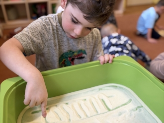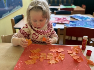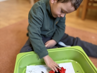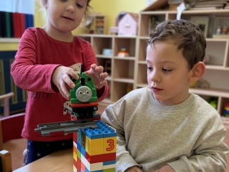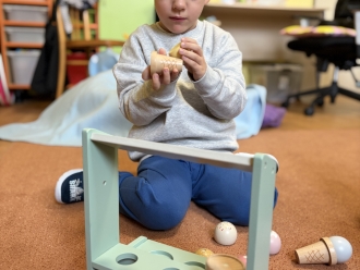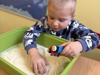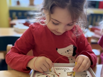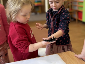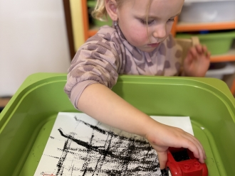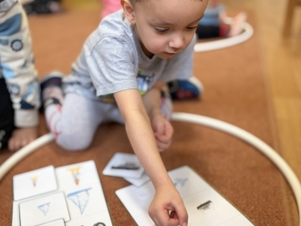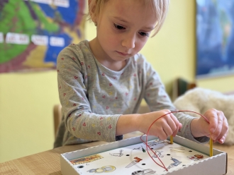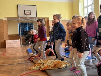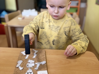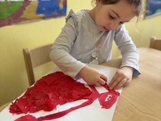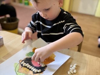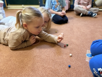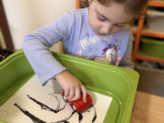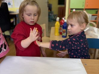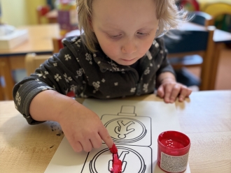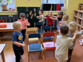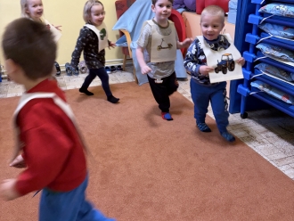 V únoru jsme si s Koťátky povídali o dopravních prostředcích. Zkoušeli jsme na papír malovat autíčky. Prstem jsme do mouky malovali kolejnice pro vlak a prstíky jsme také procvičili při malbě semaforu. Při pohybových chvilkách jsme si zahráli na dopravní prostředky a poznávali jsme některé dopravní značky. Nejvíce zábavy jsme si užili při židličkované, když jsme si všichni museli sednout na jednu zbývající židli. S dětmi jsme ve skříni objevili staré hliněnky a uspořádali soutěž ve cvrnkání kuliček.