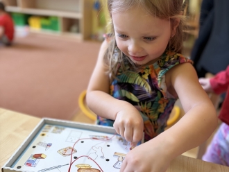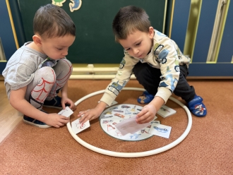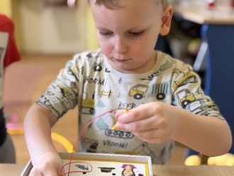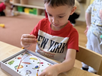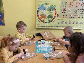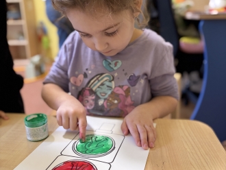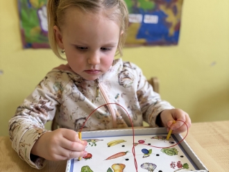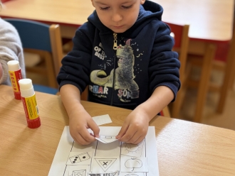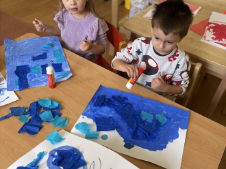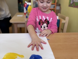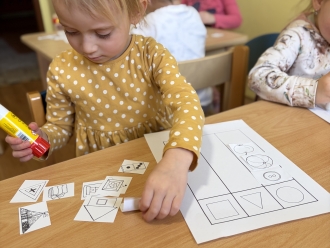 Před prázdninami jsme se zaměřili na barvy a tvary. Nejprve si děti vytvořily obrázek podle vlastní fantazie na téma „Moje oblíbená barva“. Při práci ve dvojicích jsme se naučili míchat barvy a poznávat, jaké barvy vzniknou smícháním jiných. Samostatně si pak děti procvičily řazení předmětů podle tvaru.