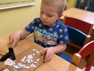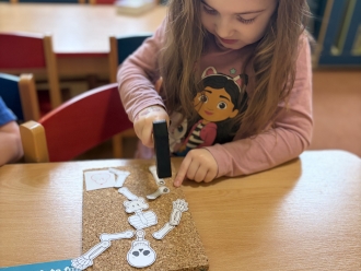 Prázdninový týden se nesl v duchu poznávání našeho těla. Děti se seznámily s některými částmi lidského těla a jejich funkcemi. Povídali jsme si o správném mytí rukou a čištění zubů. Do zatloukací podložky jsme si zatloukli obrázek poskládané lidské kostry. Z modelíny jsme si vyrobili bacila.