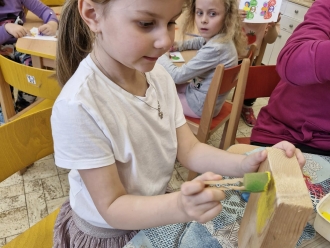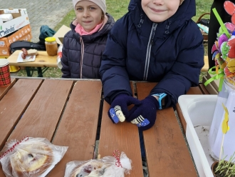 S Motýlky jsme se připravovali na trh na návsi. Vyráběli jsme výrobky s velikonočním motivem. Skoro všechno se nám podařilo prodat. Poznávali jsme i další velikonoční tradice.